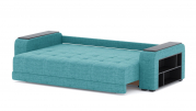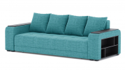 Механизм трансформации - еврокнижка. Наполнение: ПБ + высокоэластичный ППУ. Полка ЛДСП только в одном подлокотнике. Ящик для белья - есть. Чехлы подушек - несъемные, наполнение - крошка ППУ.