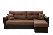 Угловой диван-кровать "Амстердам" рогожка коричневая/экокожа коричневая