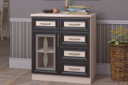 Комод №7 со стеклом витраж, дуб млечный/венге цаво