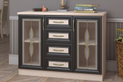 Комод №9 со стеклом витраж, дуб млечный/венге цаво