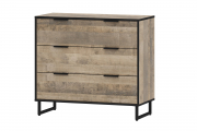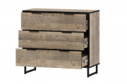 Комод из коллекции «Фолк» - современная, смелая и яркая мебель в «индустриальном» стиле или стиле «лофт». Комод с тремя выдвижными ящиками на направляющих полного выдвижения. Изделие на металлическом каркасе и установлено на высокие опоры с пластиковыми подпятниками.