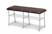 Оригинальная обувница выполнена из металлокаркаса. Мягкое сидение выполнено из качественной экокожи. На полках можно разместить порядка восьми пар обуви.