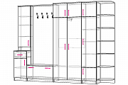 Элементы — Вешалка / Зеркало / Колонка закрытая с полками / Обувница / Панно / Угловой элемент / Шкаф для одежды / Ящики
