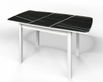 Стол обеденный раздвижной "Флорида" стекло с фотопечатью СМ-3, ЛДСП белый, опора массив прямая белая